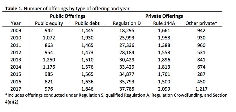 Since the financial crisis, IPO activity is flat, while private offerings have doubled.